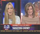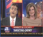 Arianna Huffington went on H&C last night to face the usual nonsense from Sean who had the help of the racist Coulter. When you hear a person give reasoned facts as Arianna does next to Hannity's usual "are you embarrassed he/she said this," routine," or Coulter trying to defend her positions by citing a NY Times editorial as her proof that liberals love terrorists-it's quite evident who has a brain and who are vaudevillian Bushbots.