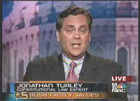 Turley: Well, first of all this President's theory of his power I think is now so extreme that it's unprecedented. He believes that he has the inherent authority to violate federal law. He has said that. Not just the signing statements and the infamous torture memo-that Alberto Gonzales signed. It was stated that he could in some circumstances order federal officials to violate federal law and this is consistent across the board with this President. Frankly, I'm not too sure what he thought he was swearing to when he took the oath of office to uphold the Constitution and our laws. I've never seen a President who is so uncomfortable in his constitutional skin.