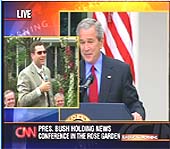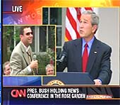 Peter Daou: The point of this post is not that Bush intentionally taunted a blind man, but that his insistence on clowning with the press is undignified and highly inappropriate--Bush to a man in a wheelchair: "You look mighty comfortable"...read on