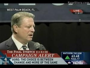 Al Gore campaigned for Barack Obama in West Palm Beach, Florida. West Palm Beach was a focal point in controversy surrounding vote counting in the 2000 election so what better place to have Al Gore stump for Obama? And he does a great job as usual.