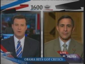 When California Congressman Darrell Issa brings up the right-wing stimulus lie du jour -- the so-called "train to Sin City" -- David Shuster delivers a well-deserved smackdown, practically laughing at Issa for having the balls to spread that lie on his show. Good stuff. Bravo, David. Watch Issa start squirming as Shuster unloads at around 4:30.