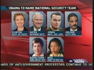 President-Elect Barack Obama held a news conference this morning to announce his core group of National Security appointments. Impressive and bipartisan, the team signals a dramatic shift in American policy, or as the President-Elect put it, "a new dawn of American leadership to overcome the challenges of the 21st century."
